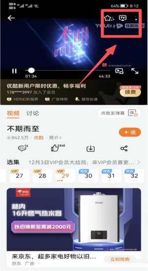 4、在视频播放页面点击会员图标,查看会员状态和特权。