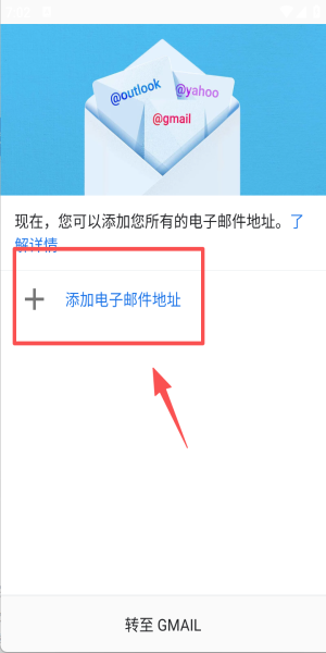 1、在欢迎页点击“添加电子邮件地址”,一键聚合Gmail、Yahoo、Outlook等账号。