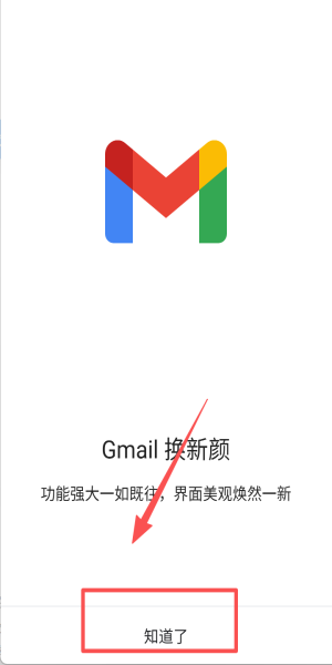 4、阅读“Gmail换新颜”提示点“知道了”,美观新界面与强大功能即刻开启。