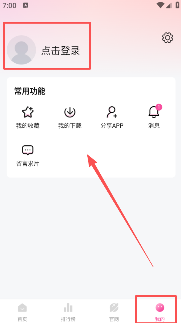 4、进入 “我的” 页面,点击 “点击登录” 完成账号操作后,可管理收藏列表、查看下载内容等。