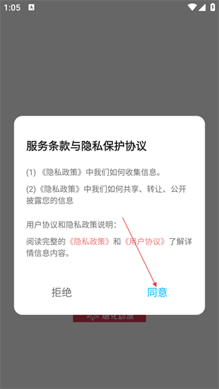 1、使用前需阅读【服务条款与隐私保护协议】,了解【隐私政策】和【用户协议】后点击【同意】,方可进入软件。
