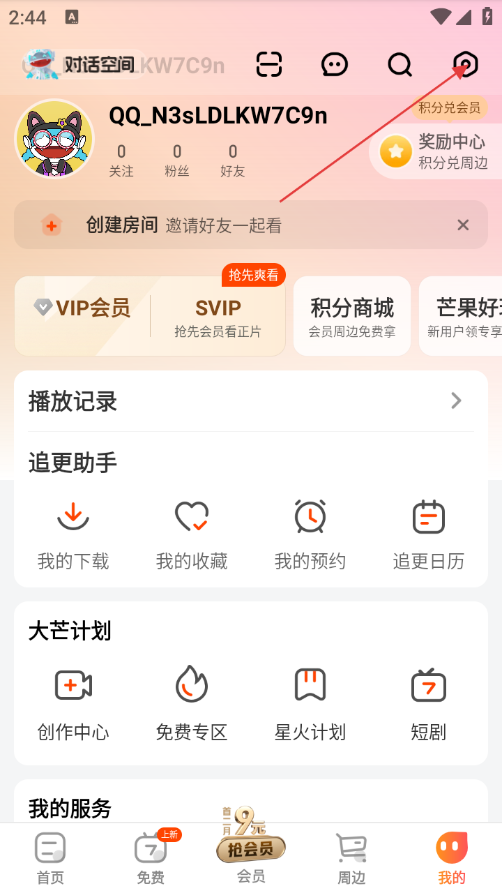 2、在个人页面,能看到【播放记录】【追更助手】等功能,点击右上角设置图标可进入设置界面。