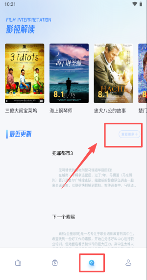 4、点影视解读看最新大片,选择想看的影片即可开始播放内容。