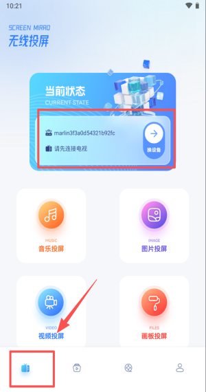 2、点击无线投屏功能,连接电视设备后可投音乐图片视频画板。
