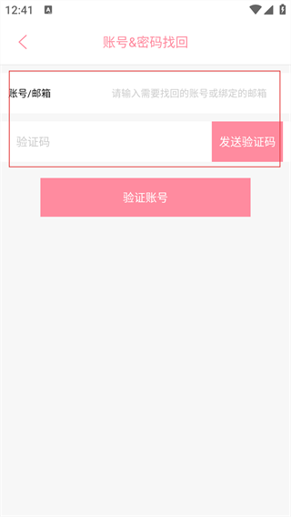 4、在账号&密码找回界面,输入账号/邮箱,获取并输入验证码后,点击【验证账号】即可进行账号密码找回操作。