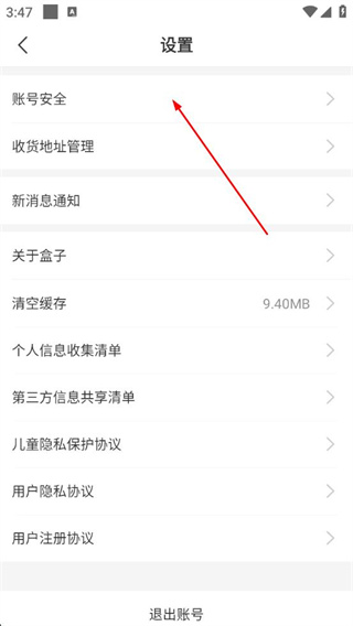 3、在设置界面,点击【账号安全】,可进入账号安全管理页面,进行密码、手机号等安全设置。