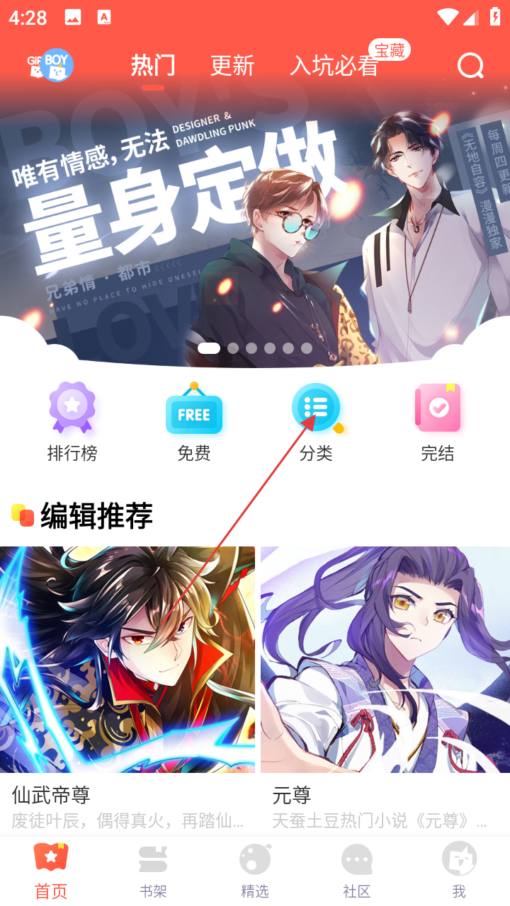 1、在漫漫漫画首页,点击【分类】按钮,进入分类页面。