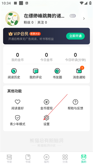 2、在【我的】页面,点击【设置】,可进入设置界面,进行缓存清理等设置操作。
