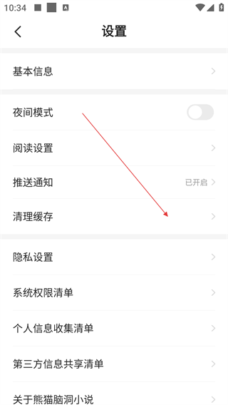 3、在设置页面,点击【清理缓存】,可进入清理缓存界面。