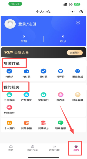 4、登录个人中心补全资料,用积分升级白银会员联系客服出行。