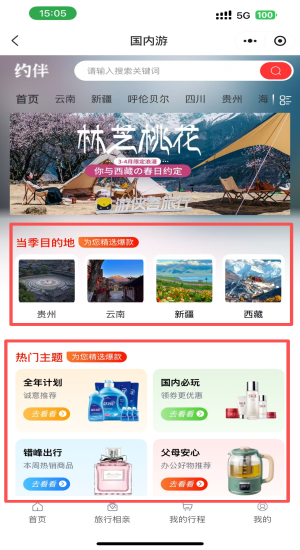 2、在国内游专区领券,选林芝桃花错峰爆款路线立减优惠。