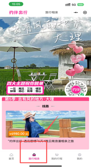 3、进入旅行相亲选大理“有风”线,付4980元起即可报名脱单。