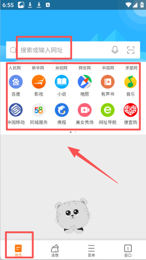 1、在浏览器首页点击搜索框,输入网址或关键词进行搜索。