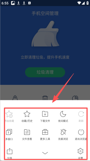 3、在手机空间管理页面,点击“设置”图标,调整各项功能选项。
