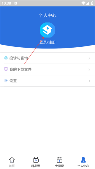 2、在个人中心页面,点击【登录/注册】按钮,进入登录方式选择界面。