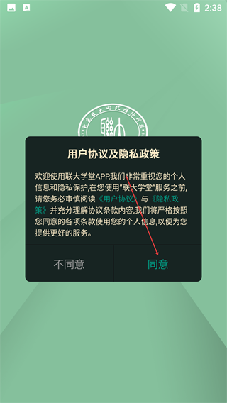 1、首次打开App,阅读《用户协议及隐私政策》弹窗内容,点击【同意】按钮,确认接受协议后进入应用。