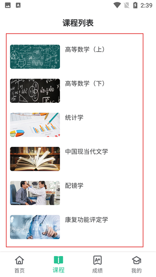 3、在“课程”页面,可查看课程列表,点击对应课程即可进入课程学习界面。