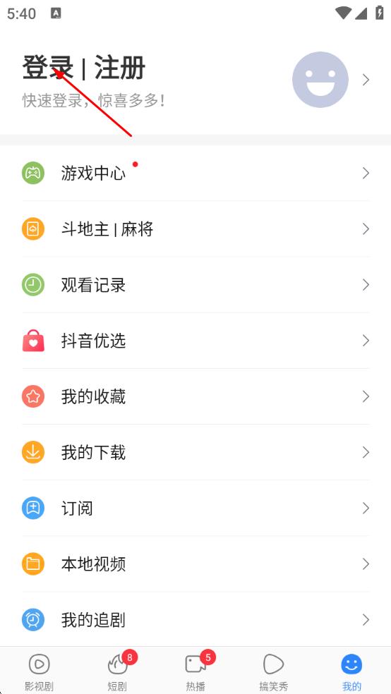 2、在【我的】页面点击【登录】选项,进入登录方式选择页面。