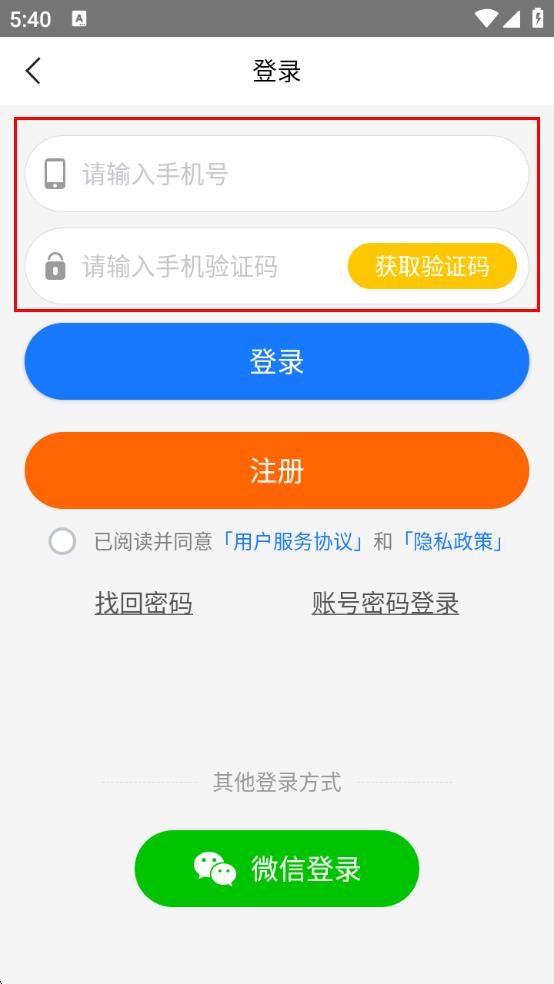 4、在手机号登录页面输入手机号码,点击【获取验证码】,输入收到的验证码,点击【登录】按钮完成登录操作。
