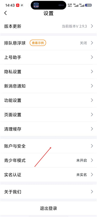 3、在“设置”界面,可进行版本更新、隐私配置等操作,选择“账户与安全”选项进入对应页面。
