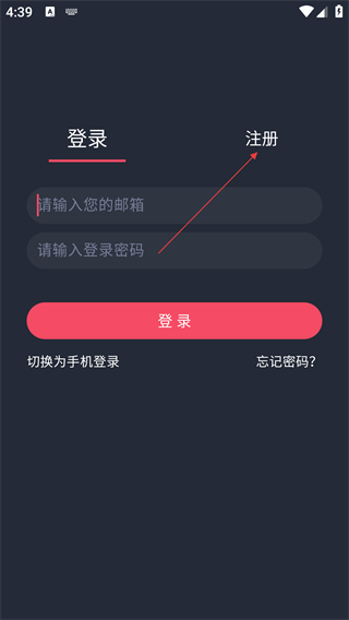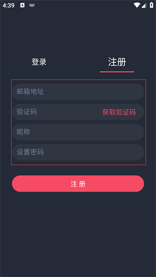 3、在登录页面,若未注册可点击【注册】,选择邮箱注册方式,输入邮箱地址、获取验证码、设置昵称和密码。