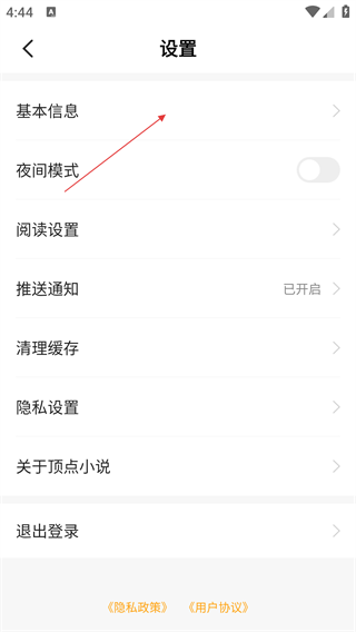 3、在设置界面,可点击【基本信息】选项,进入基本信息界面。