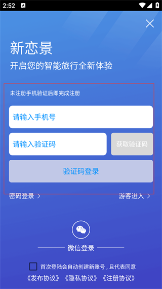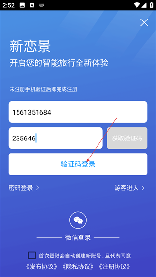 4、勾选相关协议后,点击【验证码登录】按钮,完成账号登录。