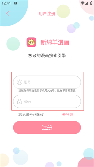 4、在用户注册界面,输入账号和密码后,点击【注册】按钮即可完成账号注册操作。