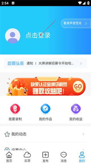 2、在个人中心页面,点击【点击登录】按钮,进入登录界面。