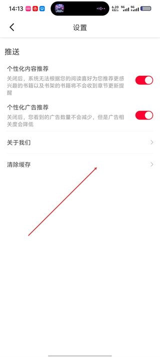 3、在设置页面,点击【清除缓存】选项,进入缓存清理界面。
