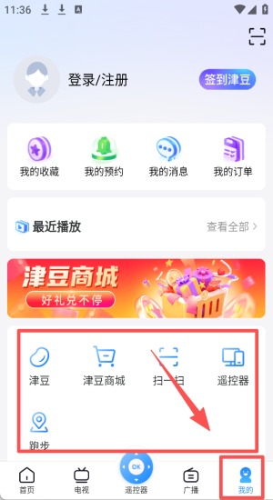 4、在“我的”页面点击“津豆商城”,进入商城浏览商品。