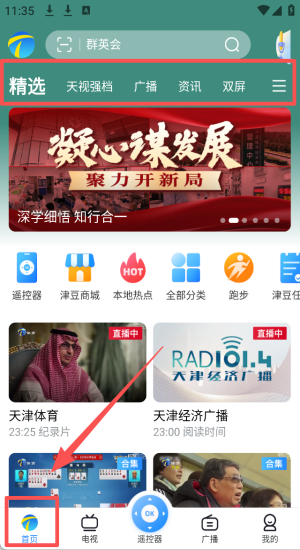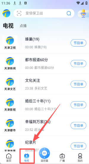 1、在首页点击“电视”图标,进入电视直播和点播页面。