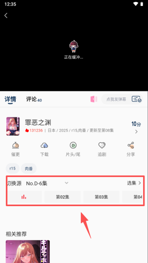 4、点选集播放,缓冲完成后发弹幕,可下载或切换线路继续看。