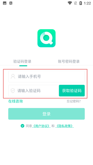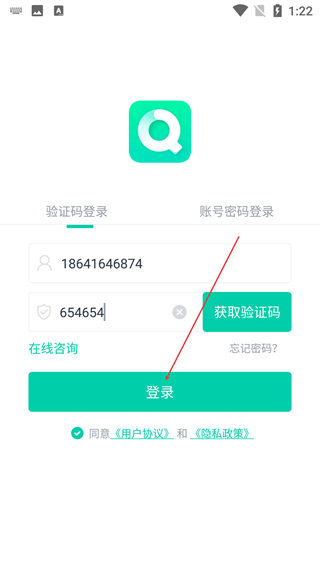 4、将收到的验证码填入“请输入验证码”框,确认已勾选“同意《用户协议》和《隐私政策》”后,点击【登录】完成操作。