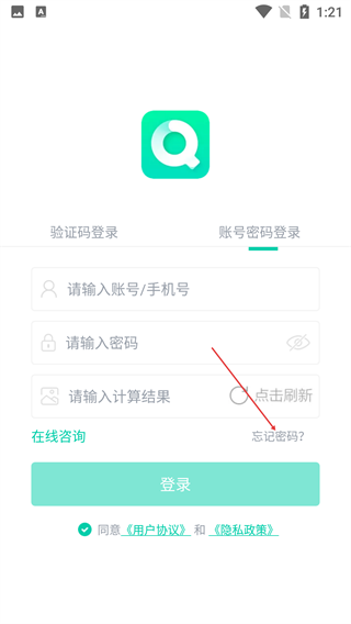 3、若忘记密码,点击【忘记密码】,按要求填写11位手机号、获取并输入验证码,设置新密码。