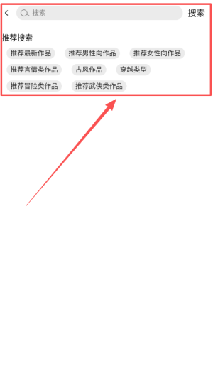 2. 在首页浏览推荐小说或搜索感兴趣的内容。