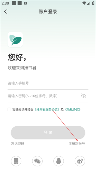 3、在账户登录界面,点击【注册新账号】,可进入注册新账号界面。