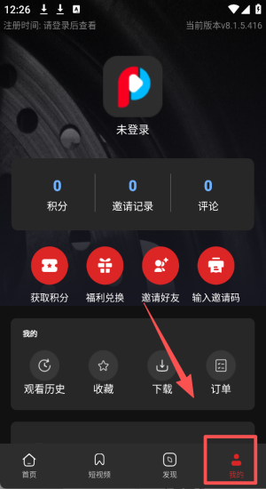 4、打开“我的”页面,先登录再查积分与观看历史记录。