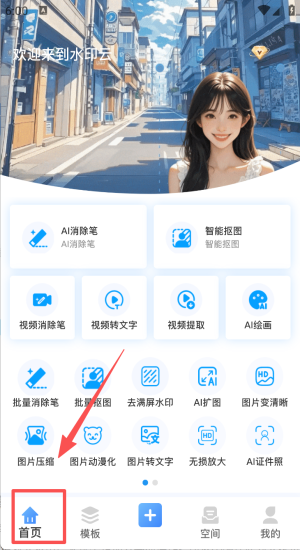 1、打开水印云首页,浏览AI消除笔、抠图、去水印等热门功能。
