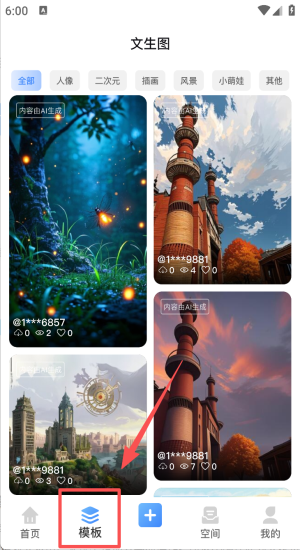 2、点击文生图进入二次元、风景或萌娃风格,挑选喜欢的模板。