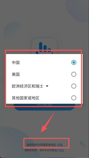 2、选择所在国家或地区,可根据实际情况选“中国”等选项。