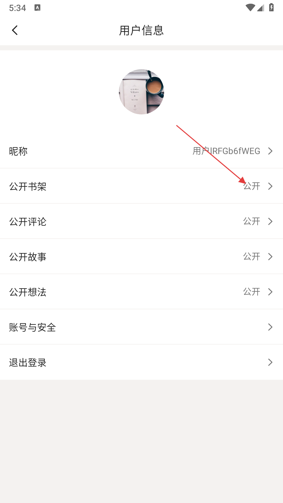 3、在用户信息页面找到【公开书架】选项,点击该选项。