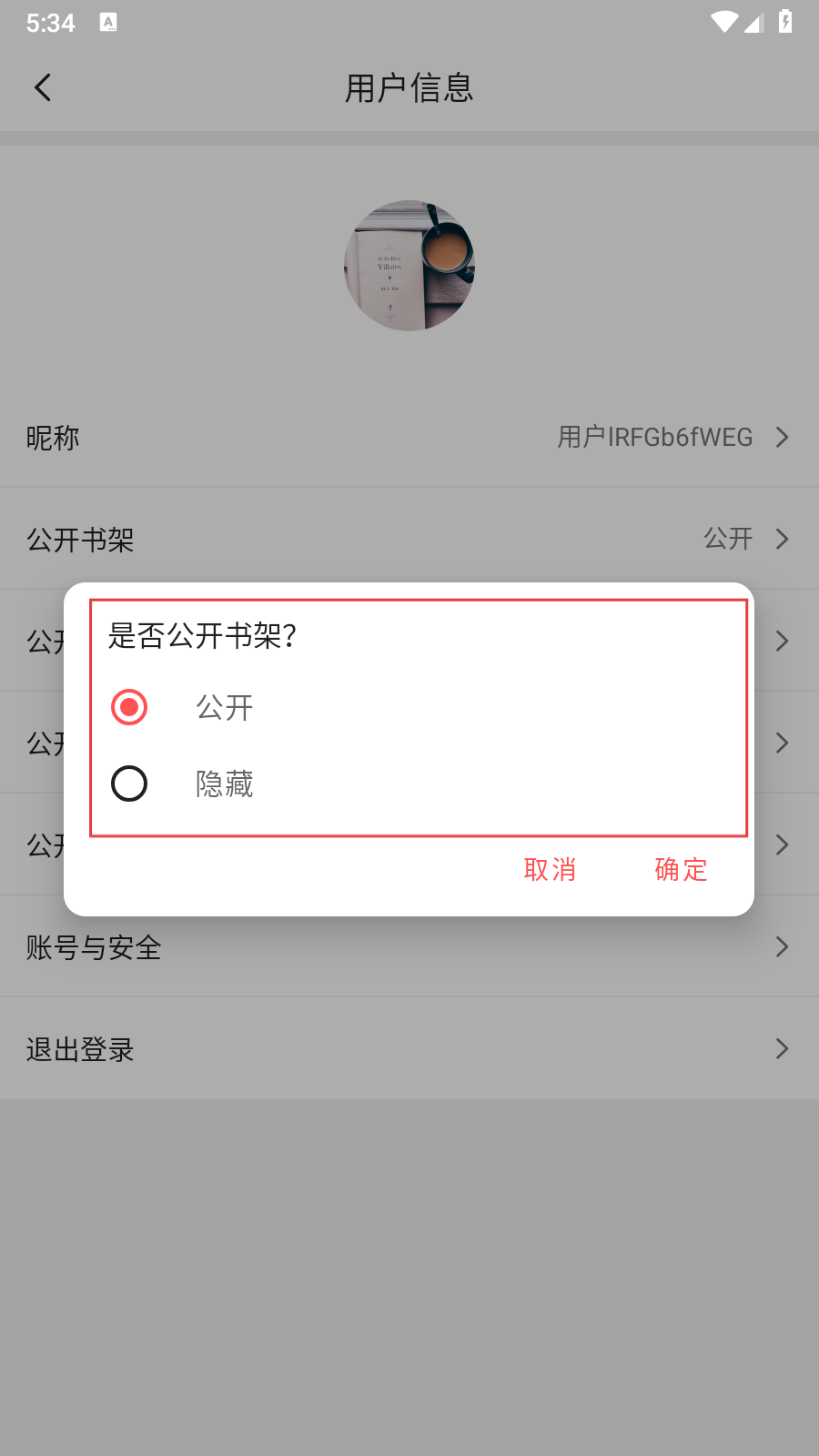 4、在弹出的“是否公开书架”选项中,可选择【公开】或【隐藏】,选择后点击【确定】即可完成设置,根据自身隐私需求选择即可。