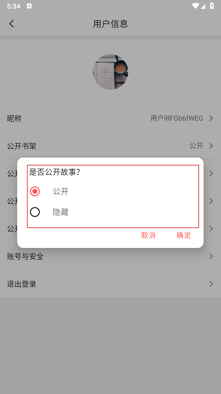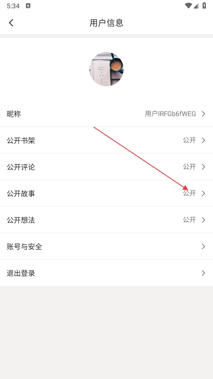 3、在用户信息页面找到【公开故事】选项,点击该选项。
