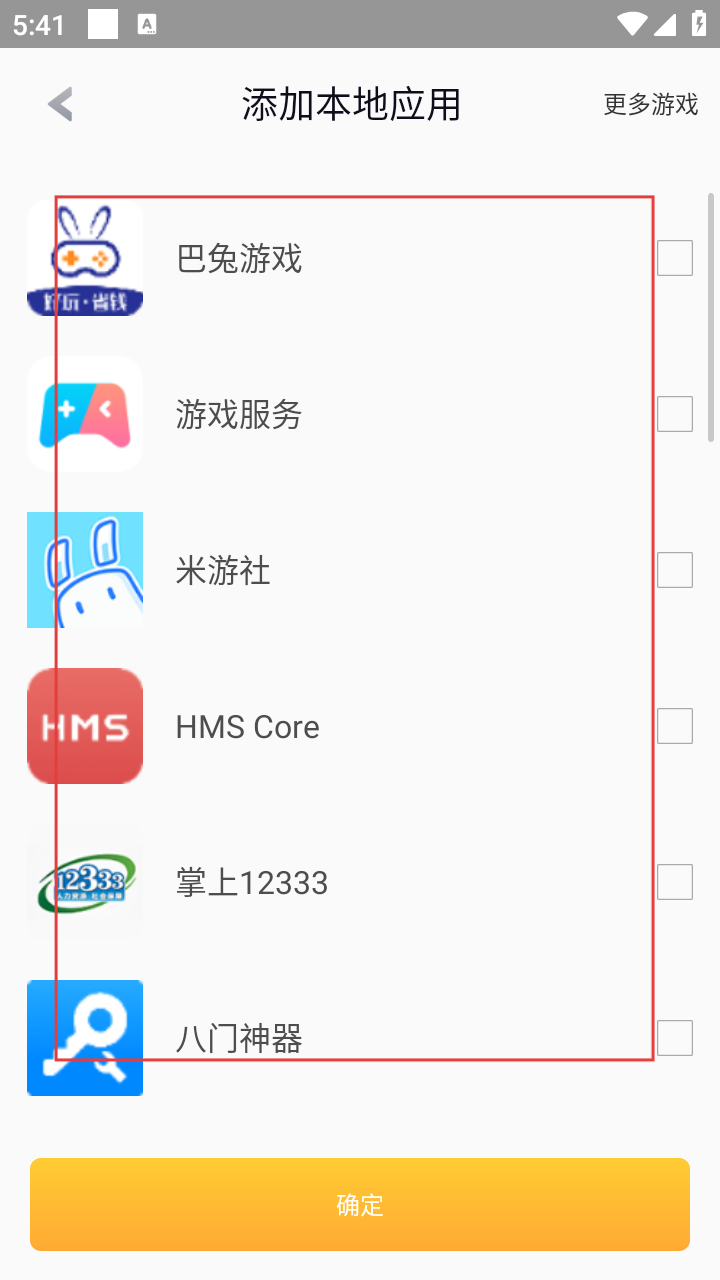 2、在添加本地应用页面,勾选想要加速的游戏应用,为游戏加速做准备。
