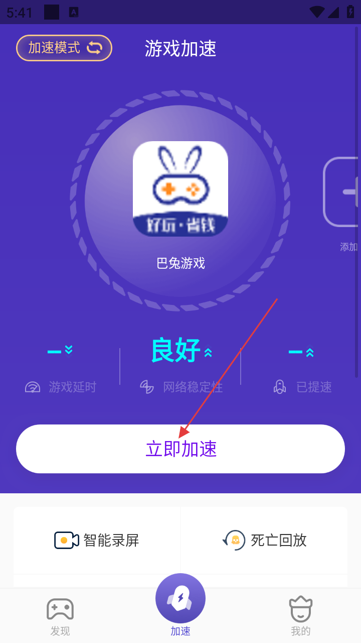 3、添加游戏后,点击【立即加速】,可启动游戏加速功能,提升游戏运行速度。