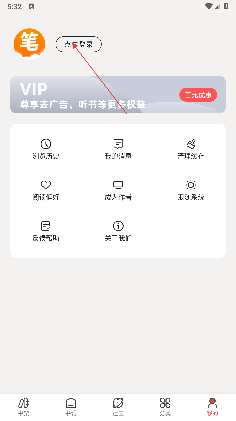 2、在个人中心页面点击【点击登录】,进入登录页面。