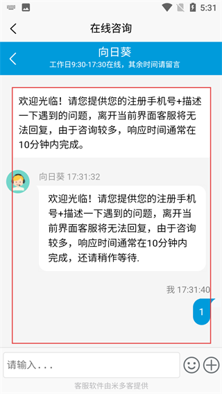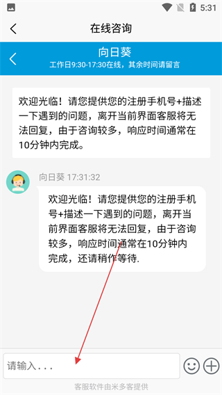 3、进入在线咨询页面,可与客服沟通问题,需提供注册手机号并描述遇到的问题,客服响应时间通常在10分钟内。