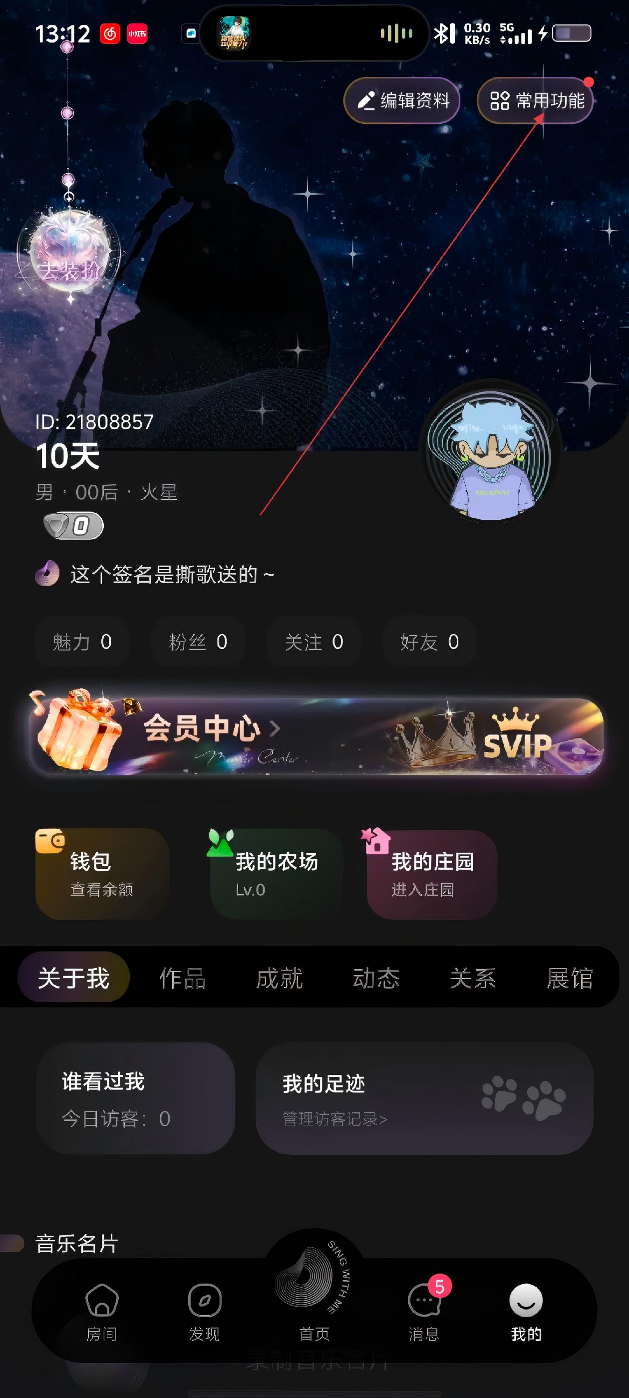 2、进入“我的”页面后,点击右上角【常用功能】。