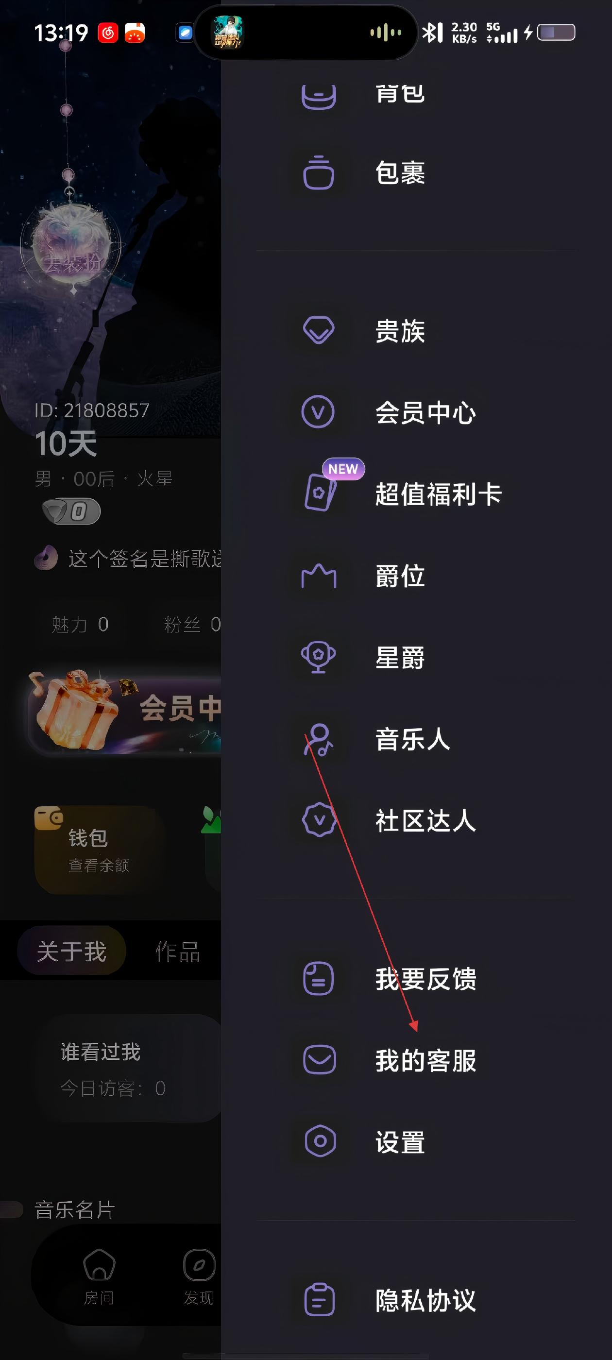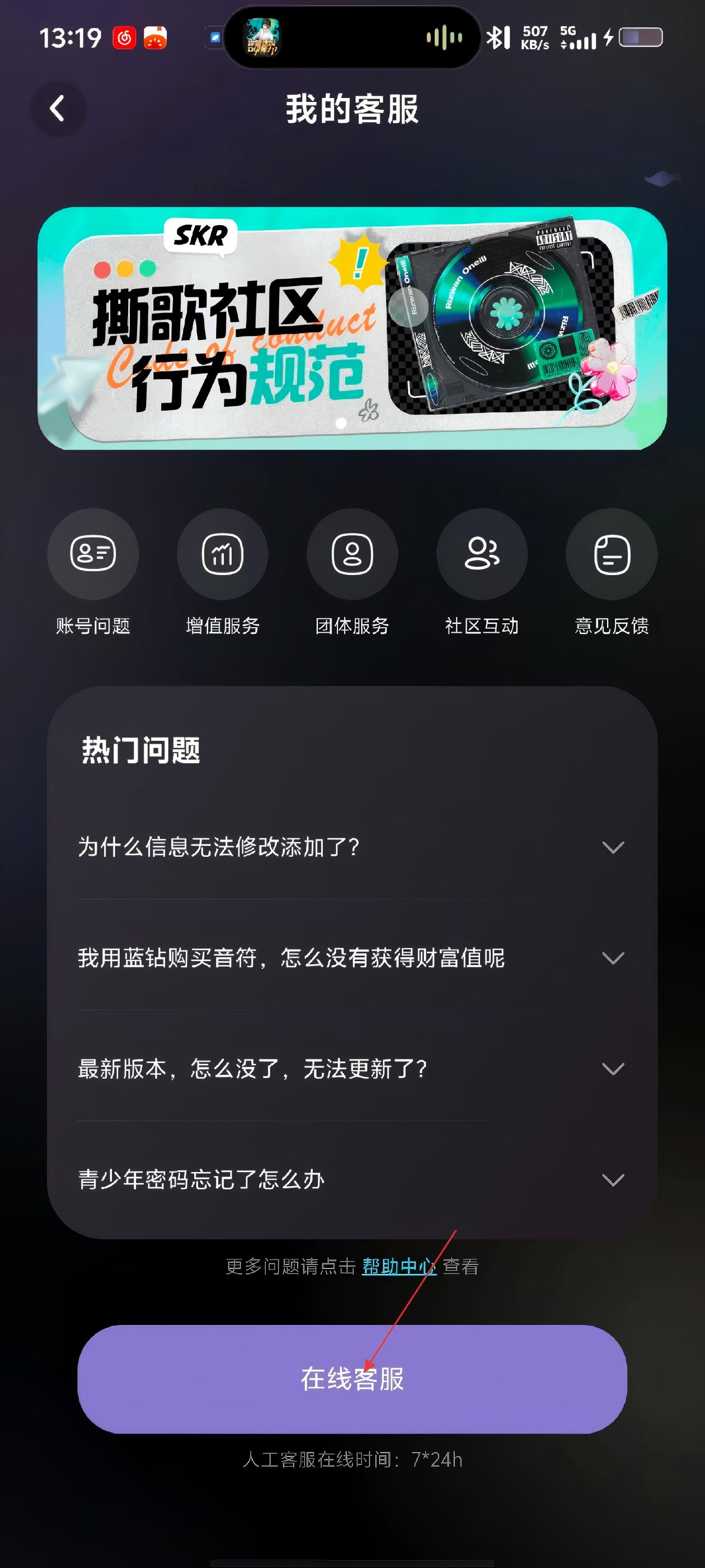4、进入“我的客服”页面后,点击底部【在线客服】,即可与客服进行沟通。